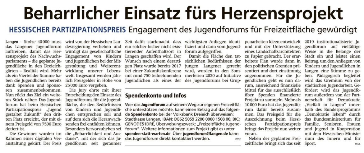 Betreff/Stichwort: Freizeitfläche Jugendforum